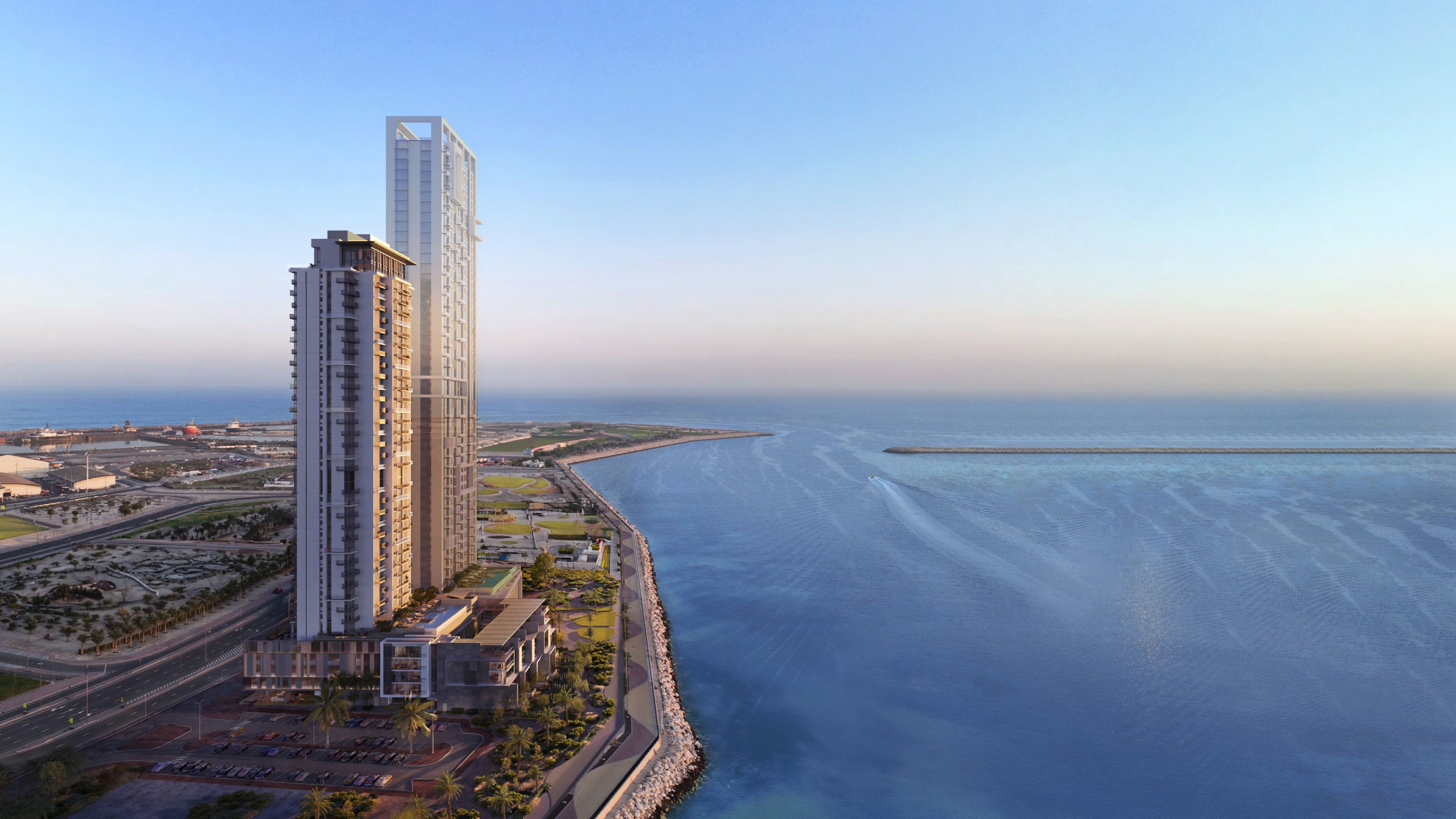 Aria by Beyond enjoys a premier waterfront position on the man-made peninsula of Dubai Maritime City, offering elegant sea‑front living with panoramic views of the Arabian Gulf, Dubai Marina, and the iconic Burj Khalifa skyline.